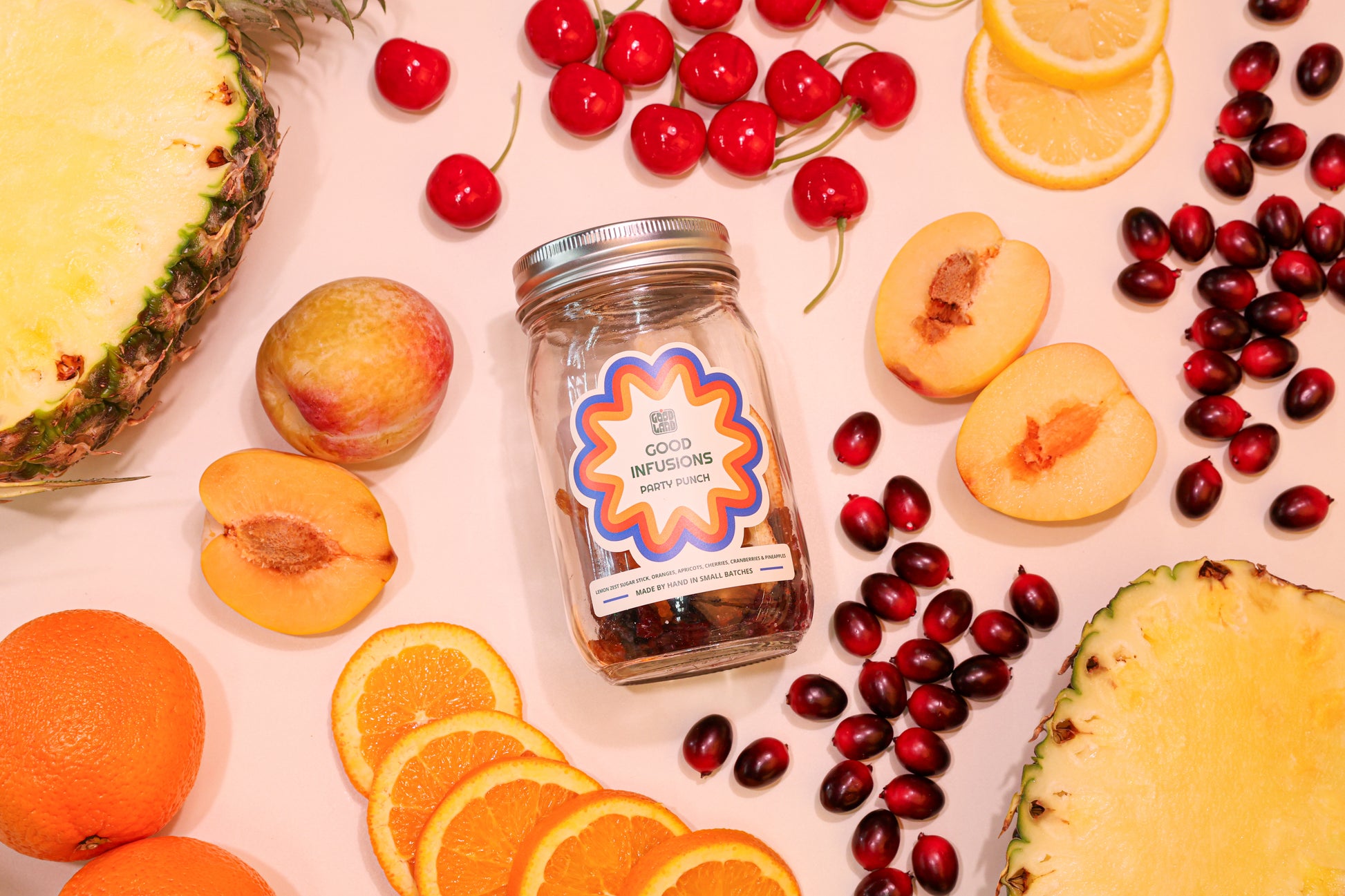THE GOOD STUFF: Lemon Zest Sugar Stick, Cherries, Cranberries, Apricots, Orange, Pinapple.