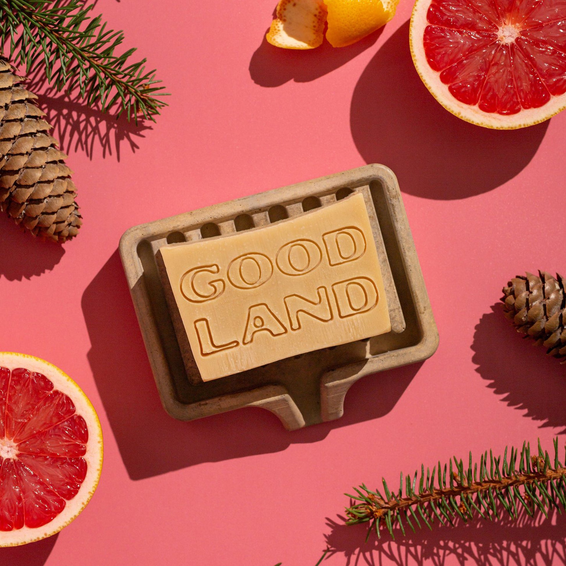Gentle clean that exfoliates clogged pores and naturally improves skin tone. Handmade by Good Land Brand.